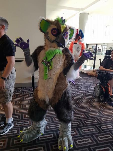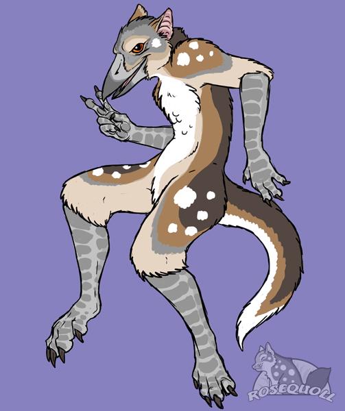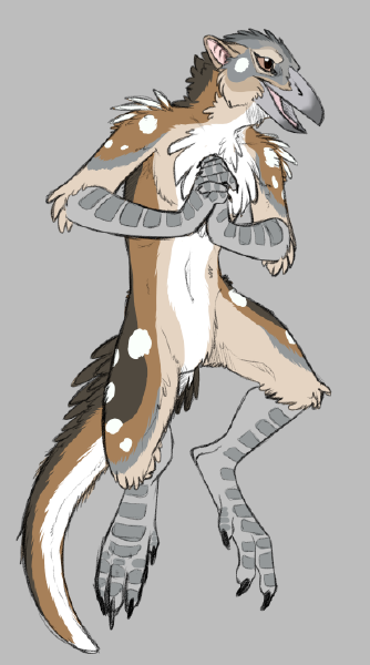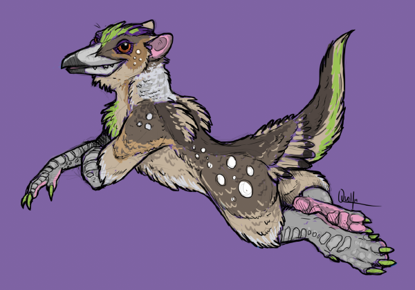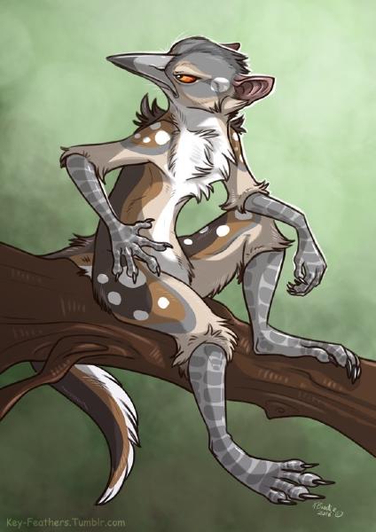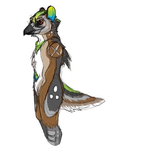 Muse is a female androg Australian Magpie x Eastern Quoll gryphon. NO WINGS. At most she can have elbow or shoulder feather tufts. Always has scaled legs and arms to knee/elbow respectively. Orange eyes like an Australian Magpie. Otherwise her design is COMPLETELY variable and can change in any way from mostly magpie to mostly quoll depending on the artists feelings and preferences on the day. Bright colours can be added, but only neon green and purples.